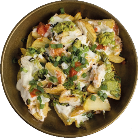 Knusprige Kartoffel Wedges mit Sour Cream, Avocado, Tomaten